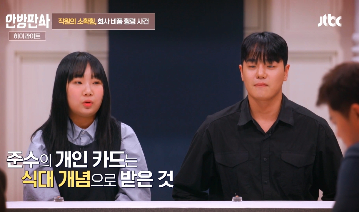 이어 직원 월급 거의 최저시급이라 식대 쓰라고 개인카드 빌려줬는데 선배랑 둘이 점심 먹은 피고소인 식대비 10만 8천원 플렉스 했다고 합니다.